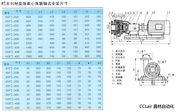 詳細信息 80FP-30C,100FP-40A,100FP-40B,100FP-40C,80FP-30B,耐腐蝕離心泵(軸聯(lián)式),