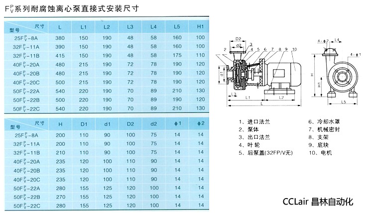 詳細(xì)信息 25FP-8A,32FP-11A,32FP-11B,40FP-20A,40FP-20B,耐腐蝕離心泵(直接式),
