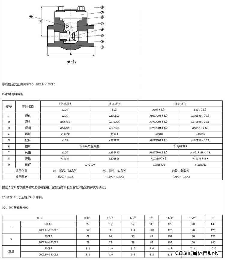 H61H-16C,H61H-25C,H61H-32C,H61H-40C,H61H-64C,鍛鋼止回閥