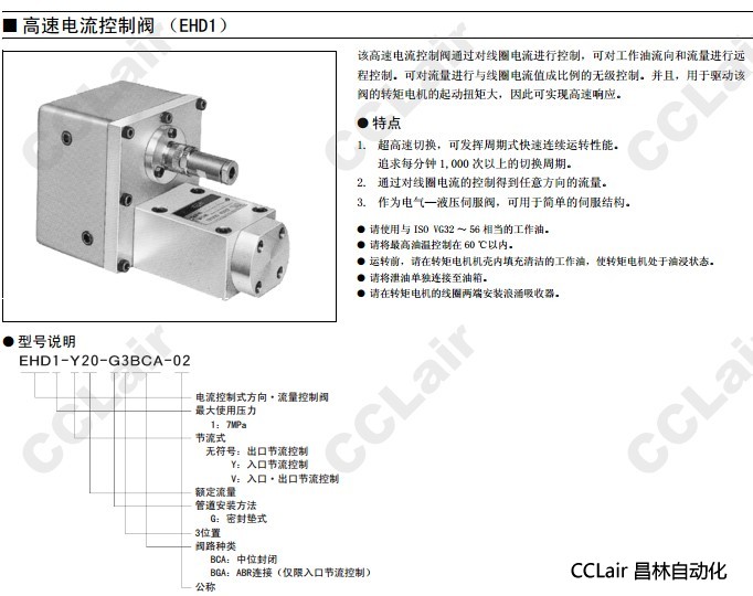 詳細(xì)信息 EHD1-20-G3BCA-02,EHD1-Y20-G3BCA-02,EHD1-Y26-G3BGA-02,EHD1-V20-G3BCA-02,高速電流控制閥,無錫昌林