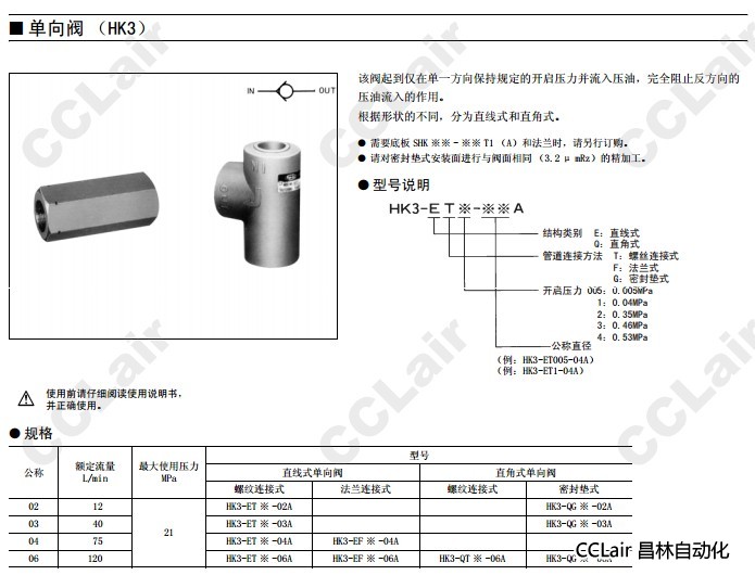 HK3-ET,HK3-EF,HK3-QT,HK3-QG,HK3-EFT,HK3-QG005-03A,HK3-QG005-06A,HK3-ET1-02A,HK3-ET1-03A,單向閥