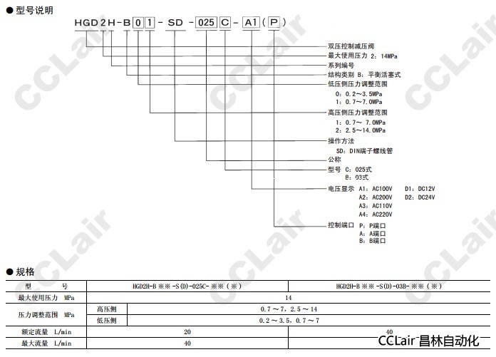 詳細信息 HGD2H-B01,HGD2H-B11,HGD2H-B02,HGD2H-B12,HGD2H-B01-SD-025C-A1(P),HGD2H-B02-SD-025C-A2(P),雙壓控制減壓閥