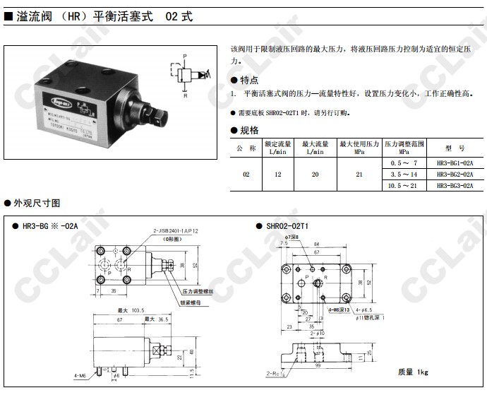 HR3-BG1-02A,HR3-BG2-02A,HR3-BG3-02A,平衡活塞式溢流閥