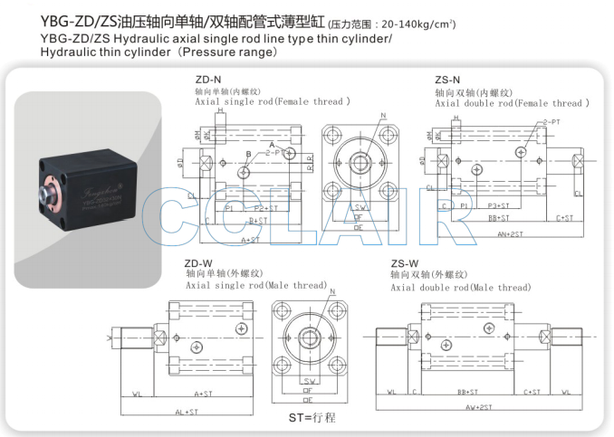 YBG-ZD20,YBG-ZD25,YBG-ZD32,YBG-ZS40,YBG-ZS50,YBG-ZS63,YBG-ZS80,管式薄型缸