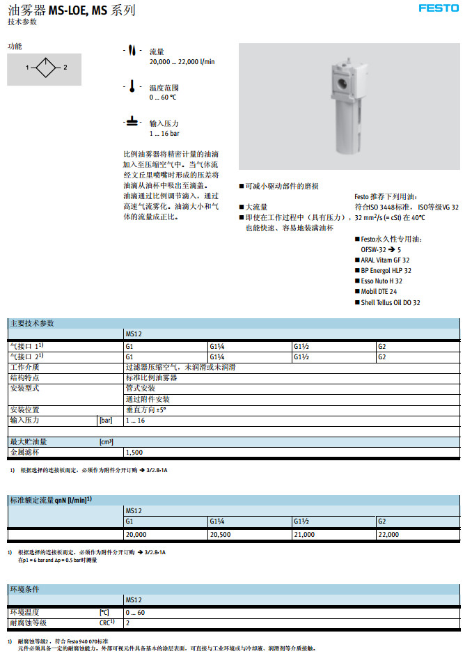 詳細信息 MS12-LOE-G-U,festo油霧器