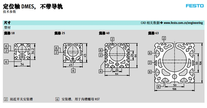 DMES-18-500-AX,DMES-25-500,DMES-40-500,DMES-63-500,festo定位軸
