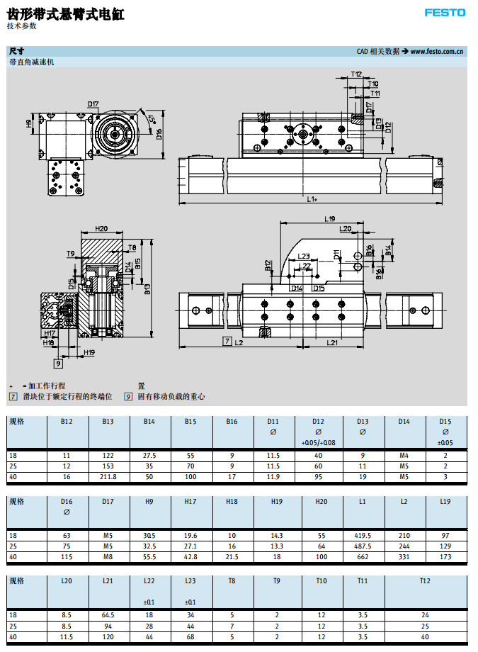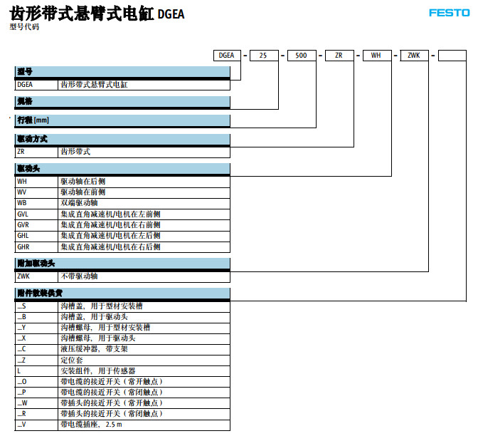 DGEA-18-500-ZR-WH,DGEA-25-500-ZR-WH,DGEA-40-500-ZR-WH,festo齒形帶式懸臂式電缸