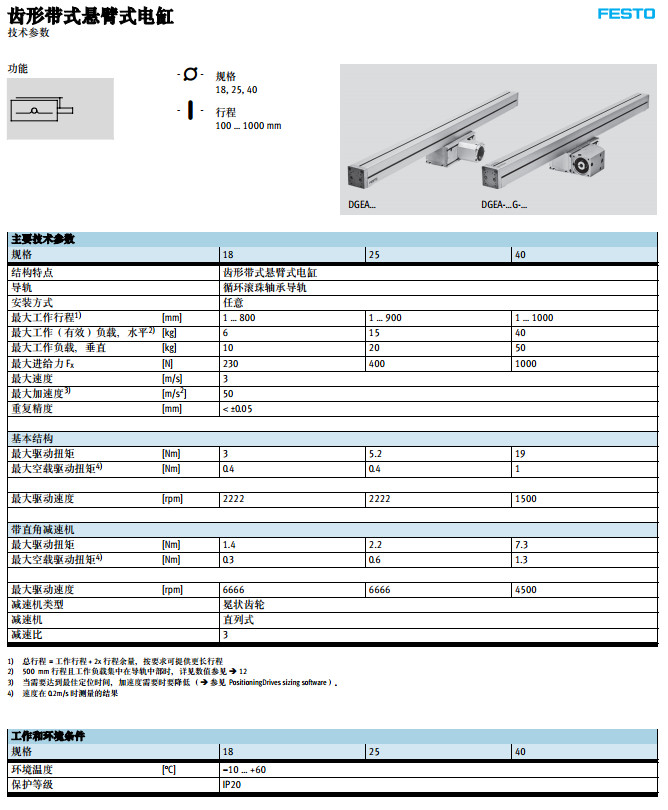 DGEA-18-500-ZR-WH,DGEA-25-500-ZR-WH,DGEA-40-500-ZR-WH,festo齒形帶式懸臂式電缸 |