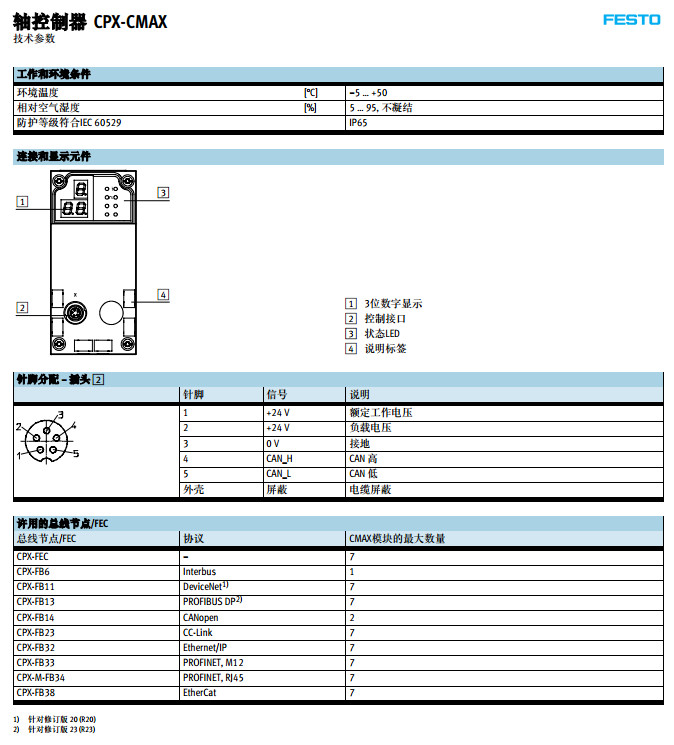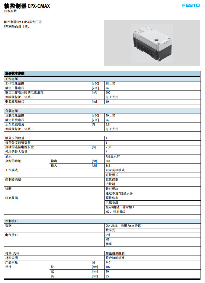 詳細信息 CPX-CMAX-CI-I,festo軸控制器