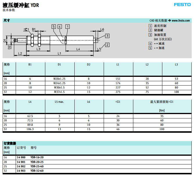YDR-16-20,YDR-20-25,YDR-25-40,YDR-32-60,festo液壓緩沖器