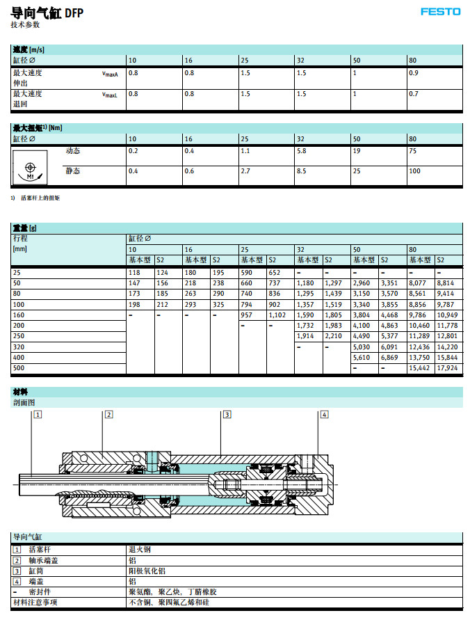 DFP-10,DFP-16,DFP-25,DFP-32,DFP-50,DFP-80,festo導(dǎo)向氣缸