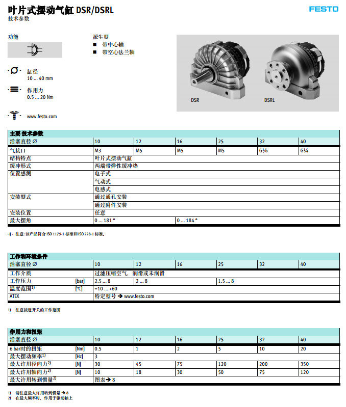 DSRL-10,DSRL-12,DSRL-16,DSR-25,DSR-32,DSR-40,festo葉片式擺動(dòng)氣缸 |