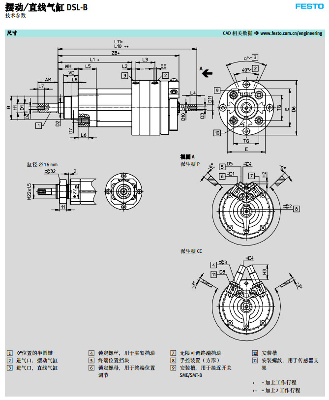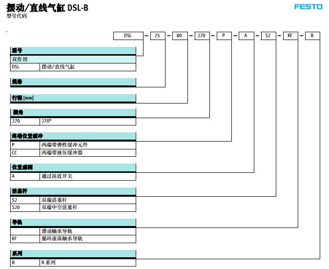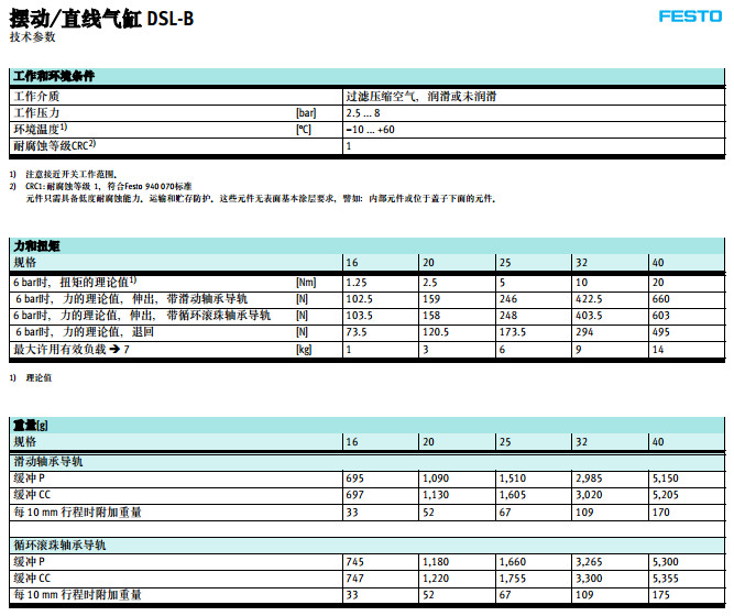 DSL-16,DSL-20,DSL-25,DSL-32,DSL-40,festo擺動氣缸