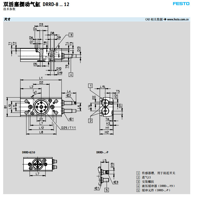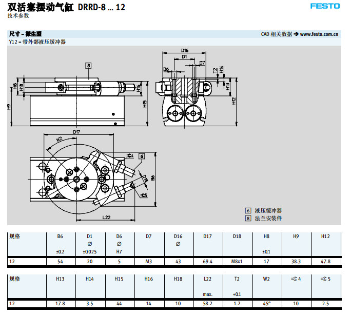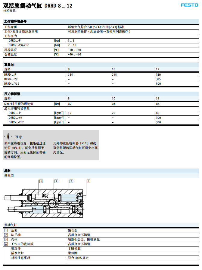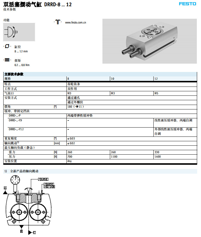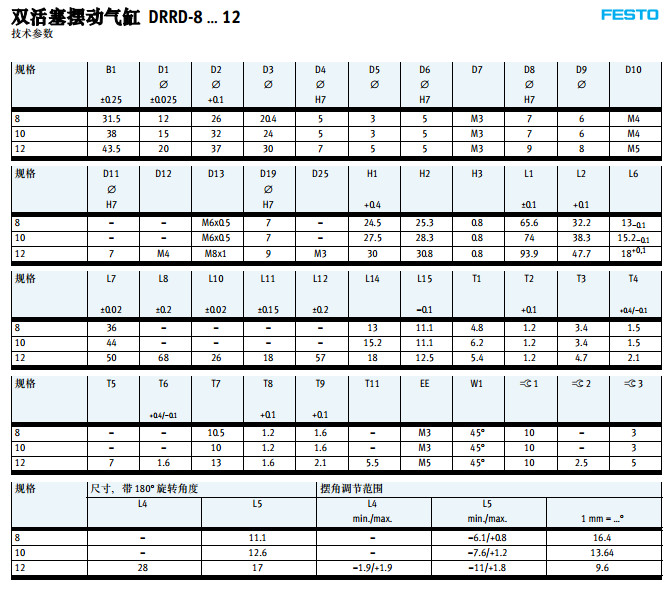 DRRD-8-180-FH-PA,DRRD-10-180-FH-PA,DRRD-12-180-FH-PA,festo擺動氣缸