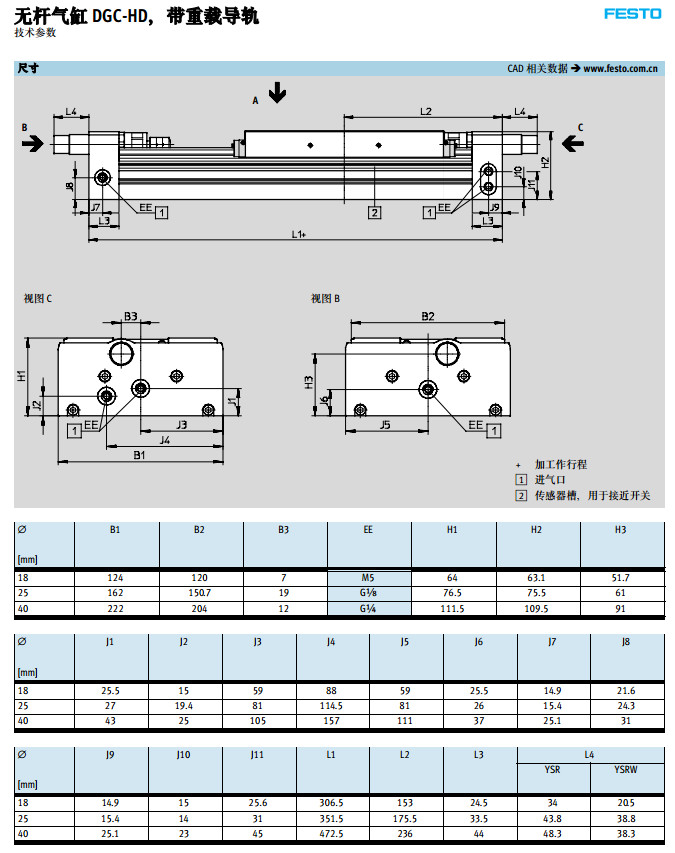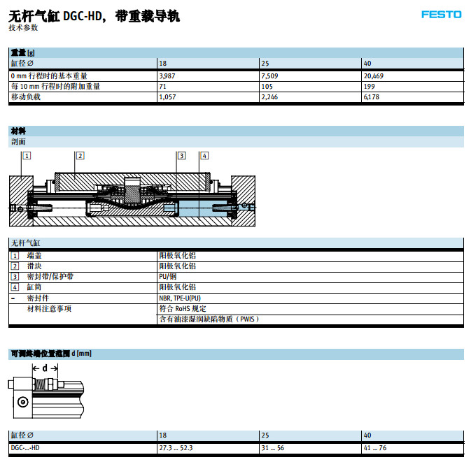 DGC-18-500-HD,DGC-25-500-HD,DGC-40-500-HD-YSRW-KL,festo無(wú)桿氣缸