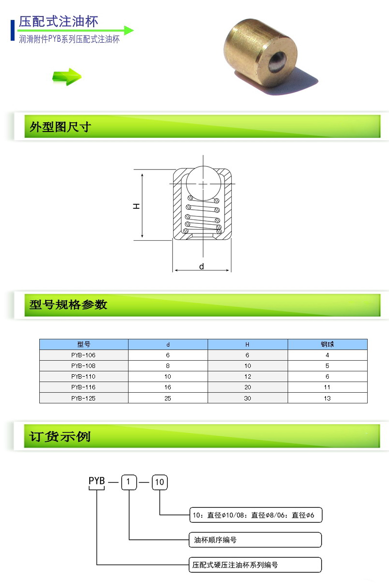 PYB-106,PYB-108,PYB-110,PYB-116,PYB-125,壓配式注油杯