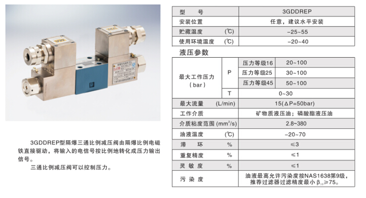 3GDDREP-02A-16,3GDDREP-02A-25,3GDDREP-02A-45,3GDDREP-02A-16D24A/10隔爆比例三通減壓閥