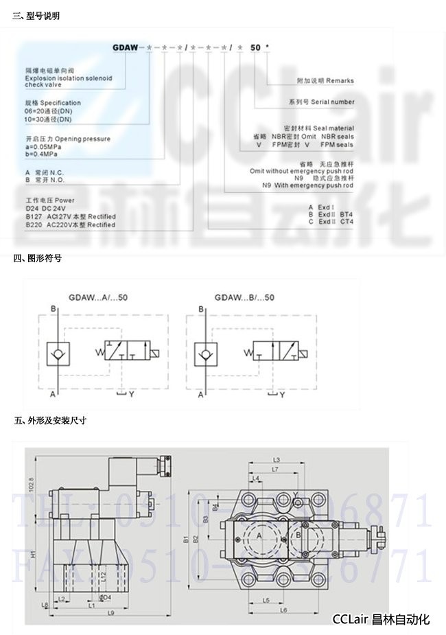 本閥是隔爆型電磁單向閥,是在液控單向閥控制油路上串聯(lián)一個(gè)隔爆電磁換向閥而構(gòu)成的電液控制單向閥。它有反向截止功能,由電信號(hào)操作控制油路通斷,使液流正向?qū)ɑ蚪刂埂?br />