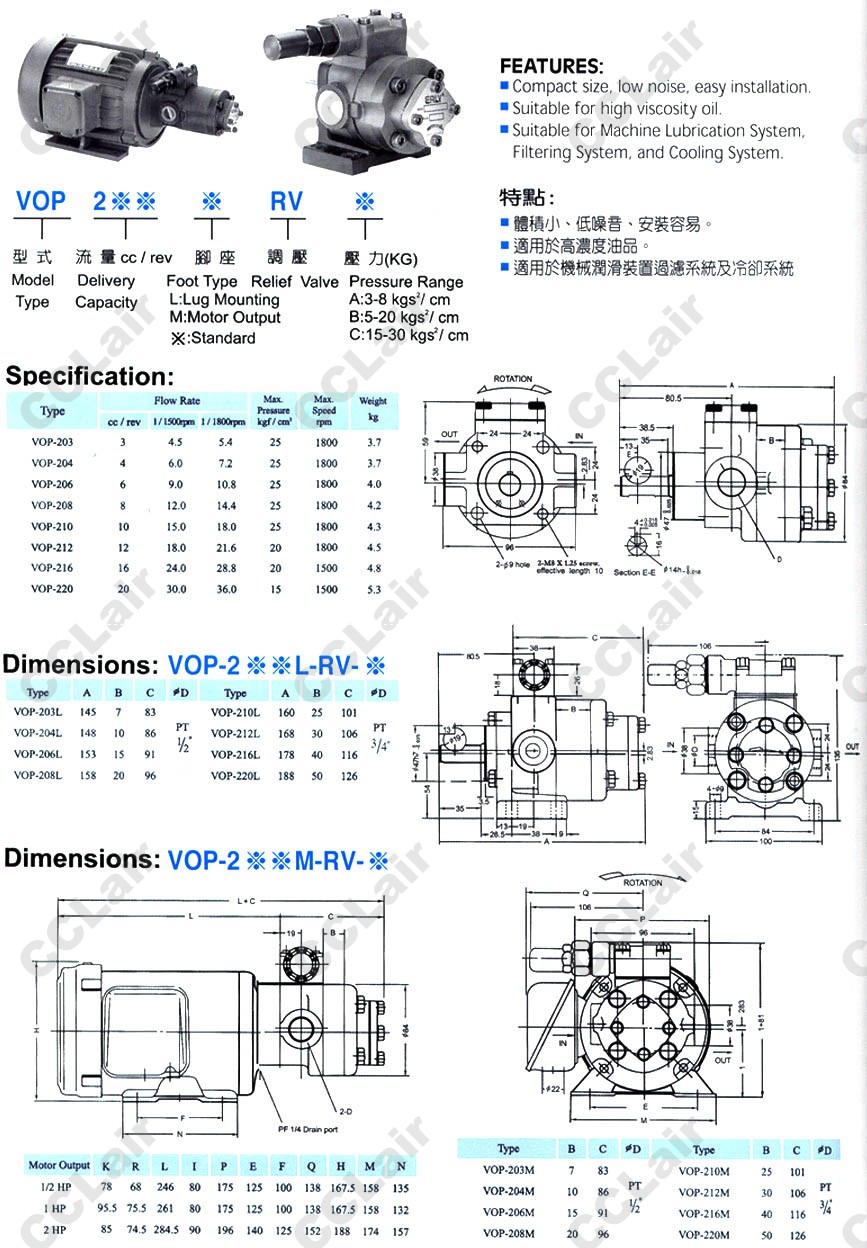 VOP-203M,VOP-204L,VOP-206M,VOP-208L,VOP-210L,VOP-212L,VOP-216M,VOP-220L-RV-A,葉片泵