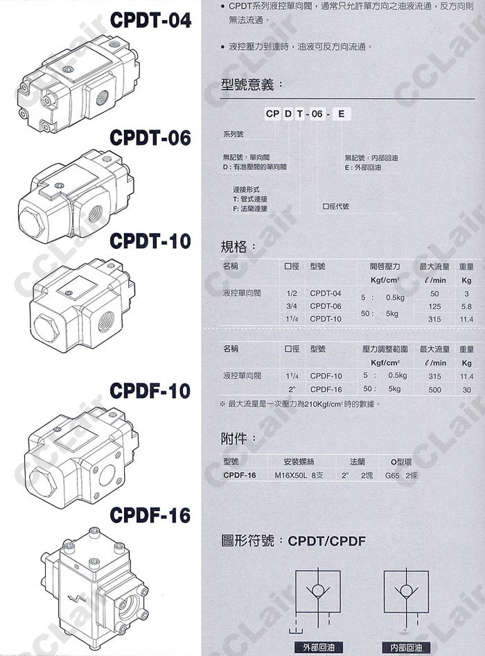 詳細信息 CPDT-04,CPDT-06,CPDT-10,CPDF-10,CPDF-16,CPDT-04-E,CPDT-06-E,CPDT-10-E,CPDF-10-E,CPDF-16-E,液控單向閥