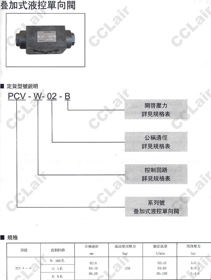 PCVW-02-B,PCVW-03,PCVW-06,PCVA-02-A,PCVA-03,PCVA-06,PCVB-02,PCVB-03,PCVB-06-C,單向閥