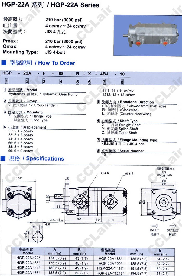 HGP-22A-F22R-X-4BJ-10,HGP-22A-L22R-X-4BJ-10,HGP-22A-F33R-X-4BJ-10,HGP-22A-L33R-X-4BJ-10,