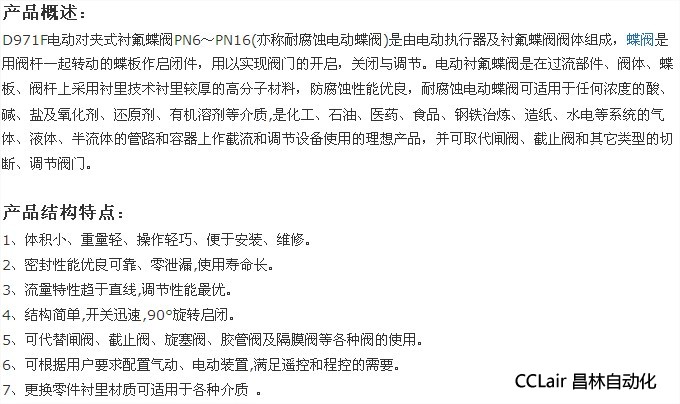 詳細(xì)信息 D971F-16,電動(dòng)對(duì)夾式襯氟蝶閥