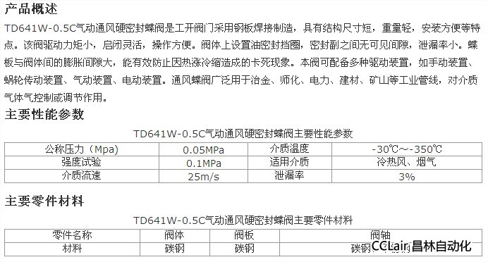 TD641W-0.5C,氣動通風(fēng)硬密封蝶閥