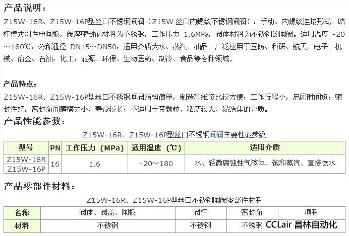 詳細信息 Z15W-16P,Z15W-16R,絲口不銹鋼閘閥