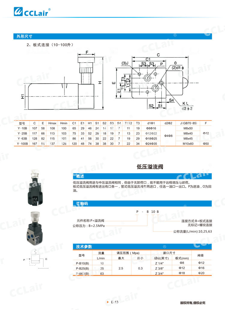 P-B10,P-B25,P-B63,P-B10B,P-B25B,P-B63B,低壓溢流閥