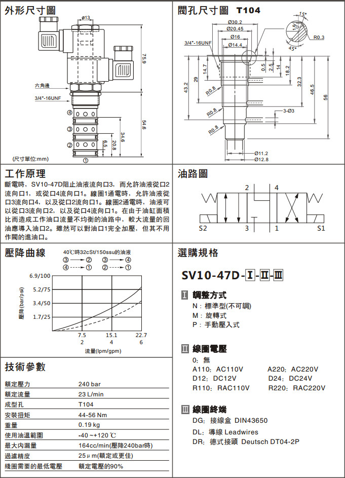 SV10-47D-P-0-DL,SV10-47D-P-A110-DL,SV10-47D-P-D12-DL,SV10-47D-P-R110-DL,SV10-47D-P-A220-DL,SV10-47D-P-D24-DL,SV10-47D-P-R220-DL,