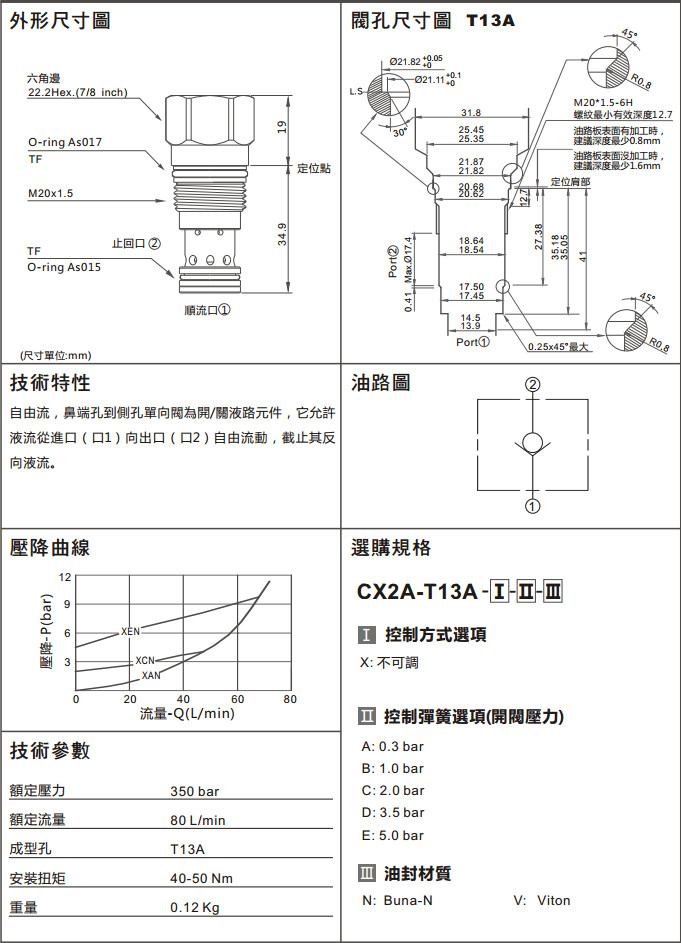 CX2A-T13A-XAN,CX2A-T13A-XBN,CX2A-T13A-XCV,CX2A-T13A-XEV,CX2A-T13A-XCN,CX2A-T13A-XDN,CX2A-T13A-XEN,CX2A-T13A-XAV, CX2A-T13A-XBV,CX2A-T13A-XDV,單向閥(口1通口2自由流)