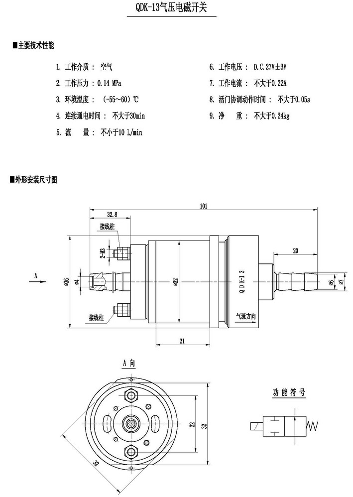 詳細(xì)信息 QDK-13,氣壓電磁開關(guān)