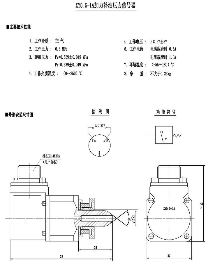 詳細(xì)信息 XY5.5-1A,加力補(bǔ)油壓力信號(hào)器