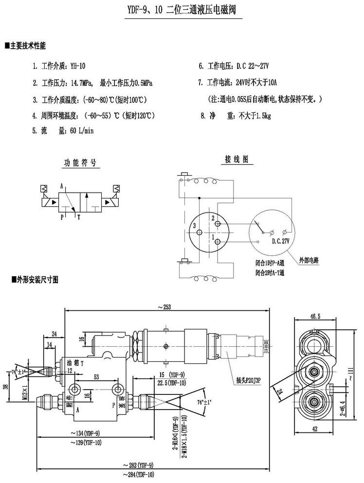 YDF-9,YDF-10,二位三通液壓電磁閥