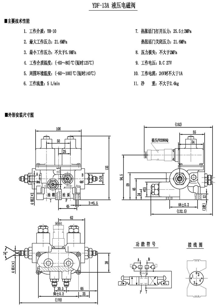 YDF-13A,液壓電磁閥
