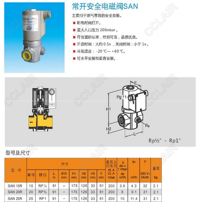 詳細信息 SAN15R,SAN20R,SAN25R,常開安全電磁閥