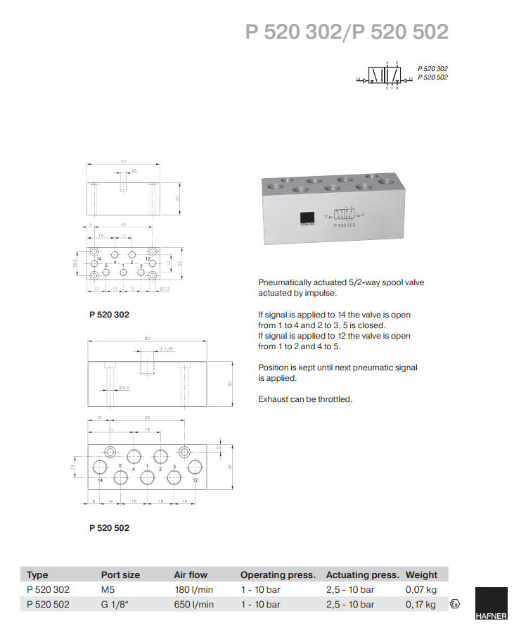 詳細(xì)信息 P520302,P520502,Hafner滑閥