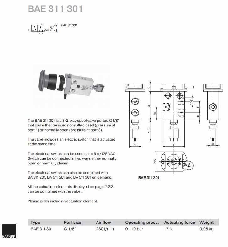 詳細(xì)信息 BAE311301,Hafner滑閥