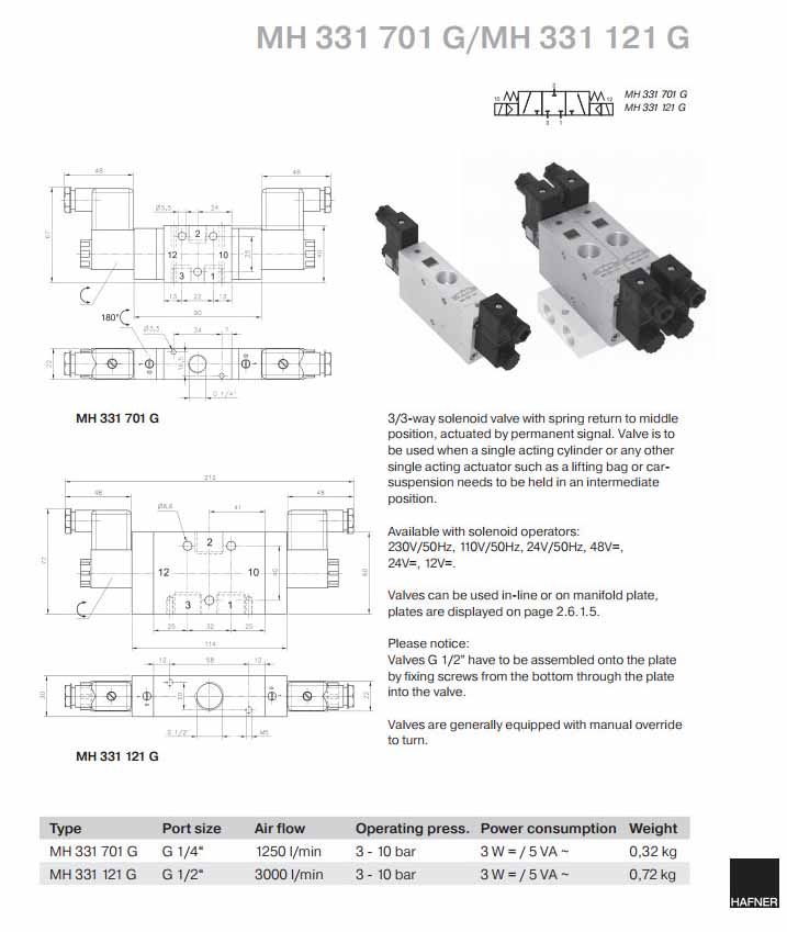 詳細(xì)信息 MH331701G,MH331121G,Hafner電磁閥