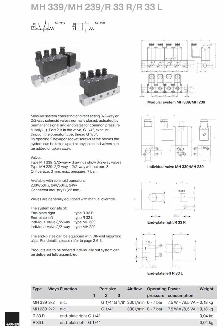 詳細信息 MH3393/2,MH2392/2,R33R,R33L,Hafner電磁閥