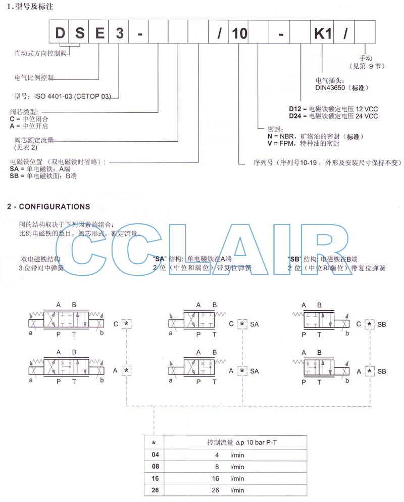 DSE3,DSE3-A08/10N-D24K1, DSE3-A16/10N-D24K1,DSE3-A26/10N-D24K1, 直動式比例方向閥