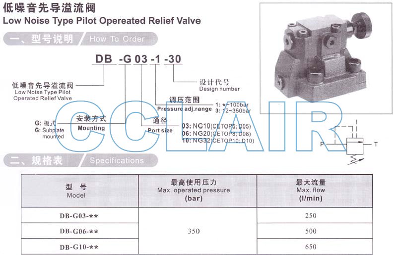DB-G03-1-30,DB-G03-3-30,DB-G06-1-30,DB-G06-3-30,DB-G10-1-30,DB-G10-3-30,低噪音先導溢流閥