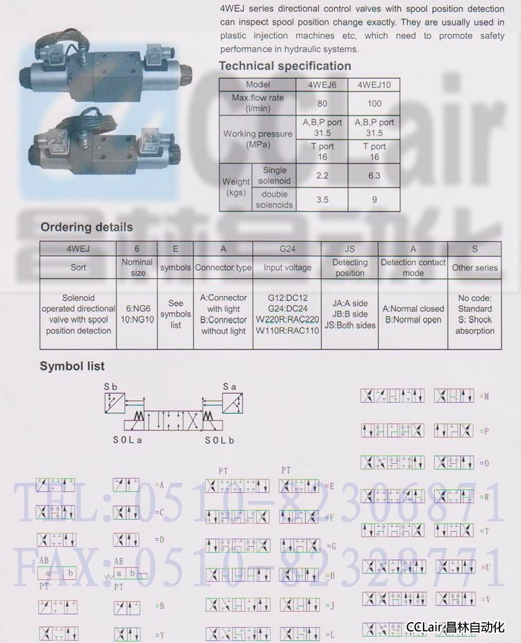 詳細信息 4WEJ6,4WEJ10,電磁換向閥
