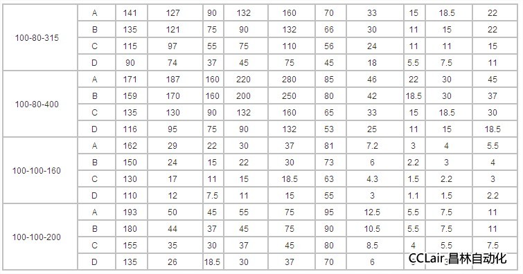 ZA80-40-315,ZA80-50-160,ZA80-50-200,ZA80-50-250,ZA100-50-315,