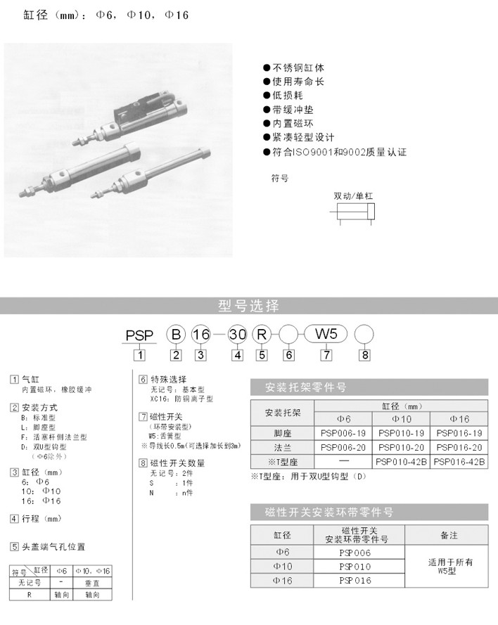 PSPB6-5,PSPB6-5R,PSPL6-15,PSPL6-15R,PSPF6-45,PSPF6-45R,PSPD16-100,PSPD16-100R,微型氣缸