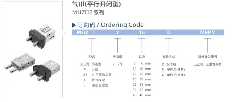 您當(dāng)前的位置:首頁(yè) » 產(chǎn)品&解決方案 » MHZ2-6D,MHZ2-6S,MHZ2-6C,MHZA2-10D,MHZA2-10S,MHZA2-10C,MHZJ2-10D,MHZJ2-10S,MHZJ2-10C,氣爪