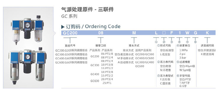 您當前的位置:首頁 » 產(chǎn)品&解決方案 » GC200-06,GC200-08,GC300-10,GC300-15,GC300-10A,GC300-15A,GC400-10M,氣源處理件--三聯(lián)件