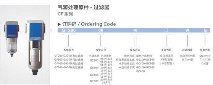 GF200-06,GF200-08,GF300-10,GF300-15,GF300-10A,GF300-15A,GF400-10M,氣源處理原件--過濾器