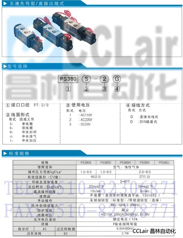 詳細信息 PS380S,PS380D,PS380H,PS380I,PS380J,五通先導(dǎo)型電磁閥